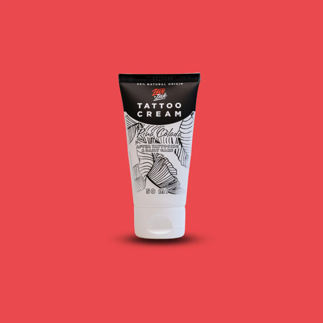 Lahka kremna formula z vonjem pina colada. Tattoo Cream je pravi agent za posebne naloge med kozmetiko za tetovaže. Kar 9 aktivnih sestavin, izbranih za maksimalno učinkovitost med celjenjem in pri dnevni negi tetovaže.